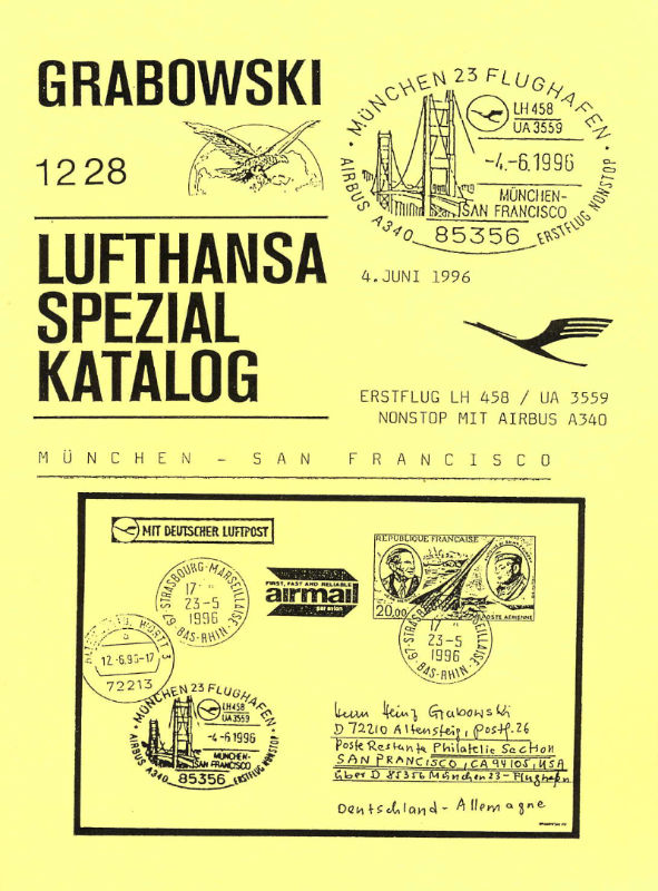 Inhalt: Flug Nr. 1228 Erstflug LH 458 / UA 3559 mit Airbus A340 am 04. Juni 1996 nonstop von München nach san Francisco.