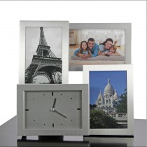· Moderner 3D-Alu-Bilderrahmen. · Für 3 Fotos im Format 10 x 15 cm. · Zusätzlich mit integrierter Uhr.