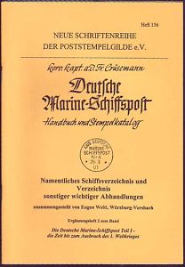 Crüsemann, Fr. Deutsche Marine-Schiffspost Handbuch und Stempelkatalog Namentliches Schiffsverzeichnis und Verzeichnis sonstiger wichtiger Abhandlungen Ergänzungsheft 2 (Zu Teil 1)
