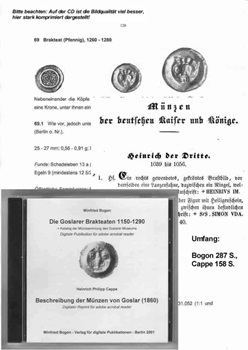 Katalog der Münzsammlung des Goslarer Museums sowie Cappe, Beschreibung der Münzen von Goslar (1860). 2 Bde. 285 + XXII, 139 S., 9 Tf. Digitale Publikation für adobe acrobat reader CD-ROM.