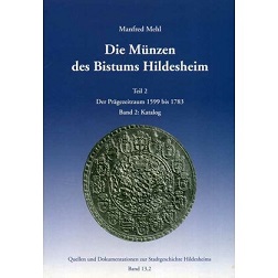 Mehl, Manfred Manfred Mehl. Die Münzen des Bistums Hildesheim. Teil 2: Der Prägezeitraum 1599 bis 1783, 2 Bände. Stadtarchiv Hildesheim (Hrsg.) Dokumentationen zur Stadtgeschichte Hildesheims, Band 13,1 und 13,2