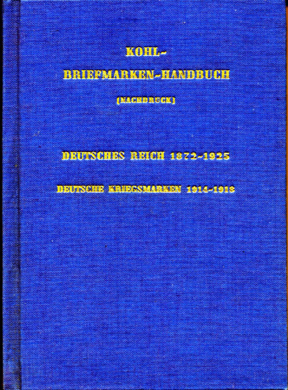 Kohl Briefmarken-Handbuch Deutsches Reich 1872-1945 und Deutsche Kriegsmarken 1914-18 Reprint 1974 des Originals von 1932 Das deutsche Standard-Werk, nachdruck aus dem Kohl-Handbuch mit Ergänzungen und Anmerkungen, Leinenband, zahlreiche Abbildungen.