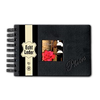 Safe Fotoalbum Echtleder Nr. 5804-5 13x18cm für 40 Fotos bis 10x15cm, schwarzer Fotokarton Praktisches Foto-Album im Taschenformat mit austauschbarem Frontfoto.