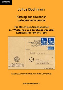 Wir hoffen, dass der Bochmann-Katalog der Maschinen-Serienstempel der Westzonen und Bundesrepublik Deutschland für die Jahre 1946 bis 1964 in der Bearbeitung des Ehrenvorsitzenden der Poststempelgilde Helmut Oeleker bei der Sammlerschaft ähnlich guten Anklang findet, wie seine bisherigen Katalogbearbeitungen.