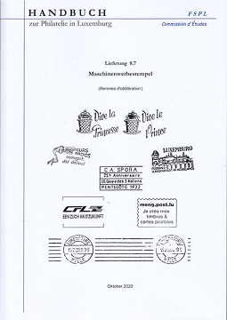 Die Commission d’Études der FSPL hat das Handbuch 8.7 der Maschinenstempel überarbeitet. Basierend auf der Arbeit von Dieter Basien, wurden von Lars Böttger die seit 2007 neu hinzugekommenen Maschinenstempel bis Mitte 2020 ergänzt. Der Leser findet jetzt eine Tabelle mit den internen Stempelbezeichnungen der Post Luxemburg. Des Weiteren wurden erstmals die Einsatzlaufzeiten der Stempel erfasst. Das ist für den forschenden Philatelisten interessant, da jetzt erkennbar ist, welche Stempel aufgrund ihrer kurzen Laufzeit tendenziell seltener sind. Hier würde sich die Studienkommission sehr freuen, wenn die Leser Ihre Sammlungen durchgehen und uns neue Früh- und Spätdaten melden. In einer nächsten Auflage werden sie ergänzt.