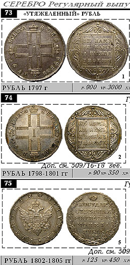 Der Preis jeder Sorte ist für den Zustand der VF angegeben. Die Preise für andere Staaten sind ungefähr proportional zum Bild. Das R-Zeichen bedeutet, dass die Münze sehr selten ist und ihr Preis durch die Nachfrage nach Auktion bestimmt wird.