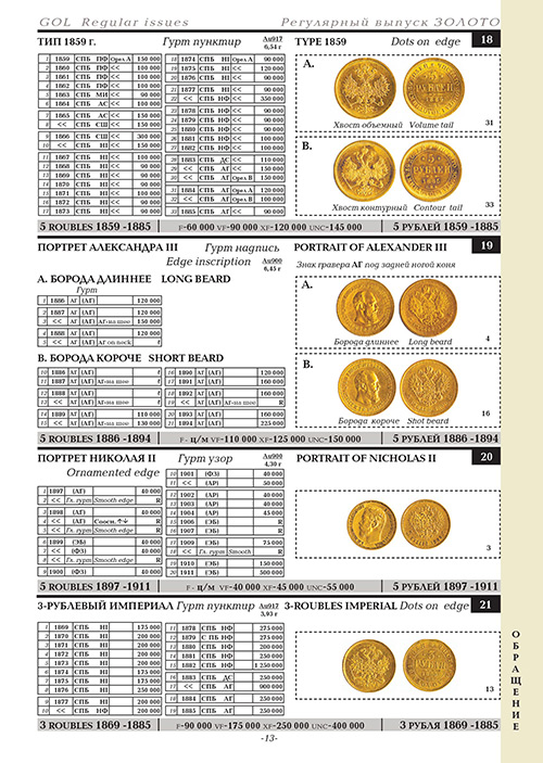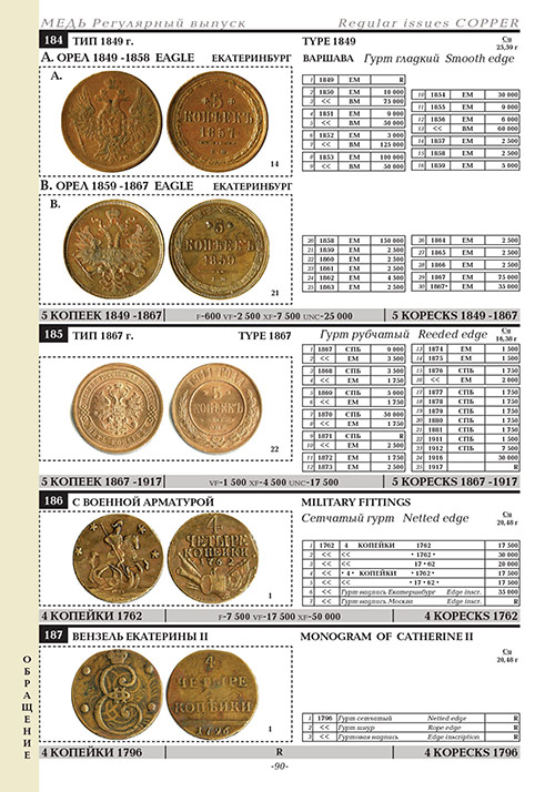 Bequemes und praktisches Verzeichnis zur Definition und Bewertung russischer Münzen der Kaiserzeit. Einfache Suche, und gleichzeitig eine große Anzahl von Sorten ermöglicht es Ihnen, eine Münze auch für einen Anfänger zu finden, sowie die genauen Kosten je nach Sicherheit zu ermitteln.