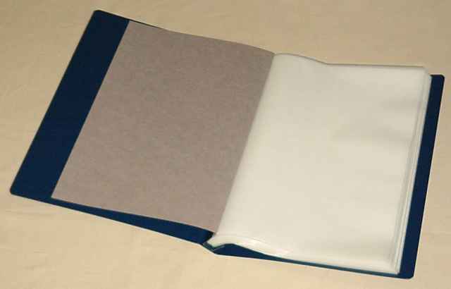 Kobra Bogenalbum B4 f. 100 Bogen bis 240x360mm mit 50 Doppeltaschen aus hochtransparenter, weichmacherfreier Folie und Zwischenblatt aus Pergamin für 100 Bogen bis 240 x 360 mm (z.B. Österreich) Einband aus starker, dunkelblauer Hartpappe. Â Größe außen (geschlossen): 278 x 384 mm Dicke: ca. 35 mm Inhalt: 50 Blatt B4E, graue Vorsatzblätter. Material Einsteckblätter: weichmacherfreie Polyethylen-Folie (PE) mit Einlage aus Pergaminpapier fest gebunden.