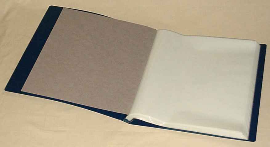 Kobra Bogenalbum B6 f. 100 Bogen bis 330x380mm Mit 50 Doppeltaschen aus hochtransparenter, weichmacherfreier Folie und Zwischenblatt aus Pergamin für 100 Bogen bis 330 x 380 mm Einband aus starker, dunkelblauer Hartpappe. Größe außen (geschlossen): 372 x 400 mm Dicke: ca. 35 mm Inhalt: 50 Blatt B6E, graue Vorsatzblätter Material Einsteckblätter: weichmacherfreie Polyethylen-Folie (PE) mit Einlage aus Pergaminpapier, fest gebunden.
