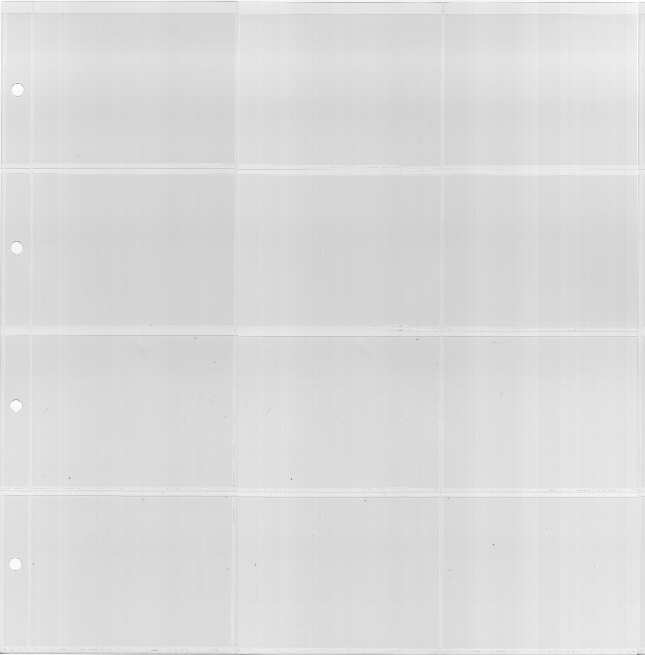 Kobra Einsteckblatt AK112Q per 10 Stück Einsteckblatt kleineres Format (325 x 330 mm) mit 12 Taschen quer  für Belege, Dokumente, Aktien und ähnliches bis 100x75mm komplett glasklar, deshalb ist, je nachdem, ob man die Taschen einfach oder doppelt bestückt, auch die Rückseite des Inhalts sichtbar. Taschenöffnung oben, Inhalt kann nicht zur Seite herausrutschen extra stabil, aus glasklarer und weichmacherfreier Hartfolie 0,2 + 0,1 mm dick passend in die Ringbinder Nr. AK1B, AK2B und AK3B. Größe außen: 325 x 330 mm Größe Tasche: 304 x 320 mm, Öffnung oben Lochung: 4-Ring Normlochung 80-80-80 mm Lochabstand Material: weichmacherfreie Hart-PVC-Folie.