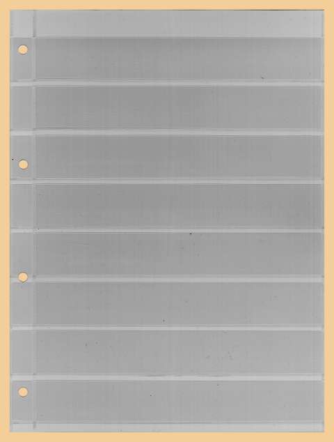 Kobra Einsteckblatt Combi E18 einseitig mit 8 Streifen, Streifenhöhe 29 mm, ganz glasklar, so ist auch die Rückseite der Sammelstücke sichtbar
