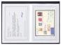 Es handelt sich um ehemalige Loskarten eines Briefmarken-Auktionshauses. Außenformat 215x160 mm (BxH). Vorderseite mit schmaler Tasche oben für Beschreibung (ca. 212x26 mm) und großer Tasche unten (ca. 212x125 mm)