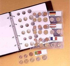 Münzenblätter aus extra stabiler Grundfolie mit eingesteckten Münzenschiebern aus weichmacherfreier Hartfolie