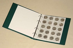 Münzenblätter aus extra stabiler Grundfolie mit eingesteckten Münzenschiebern aus weichmacherfreier Hartfolie