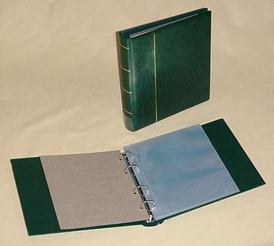 Kobra Ringbinder G17 Farbe schwarz mit 20 glasklaren, weichmacherfreien Folienhüllen für 20 Ersttagsblätter oder andere Ganzsachen im DIN A5-Format (148 x 210 mm) im wattierten Norm-Ringbinder aus hochwertigem, lederartigem Kunststoff mit dekorativen Goldlinien