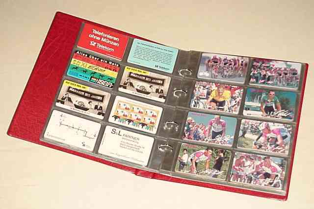 Kobra Telefonkartenalbum G28 Farbe schwarz mit 10 glasklaren Einsteckblättern aus weichmacher-freier Hartfolie für 80 Telefonkarten. Wattierter Ringbinder aus hochwertigem, lederartigem Kunststoff.