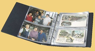 Postkarten- und Fotoalbum im Ringbinder blau mit 40 glasklaren,