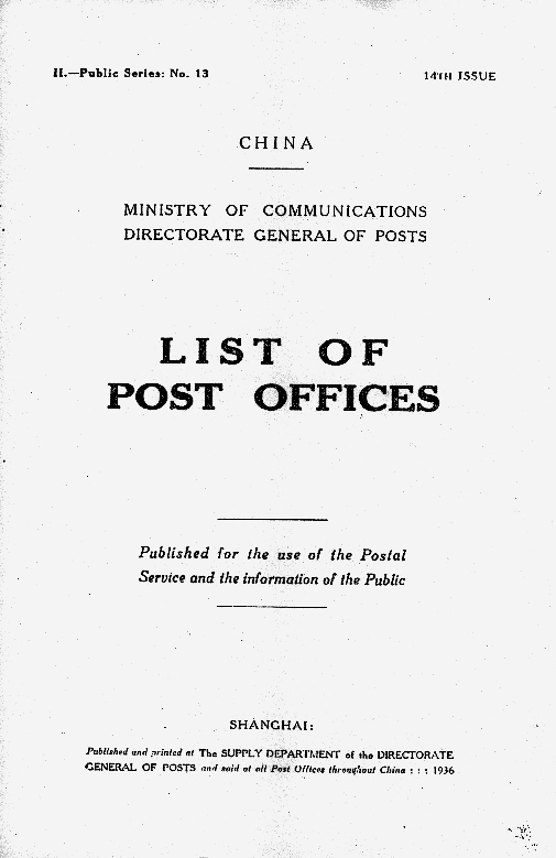 List of Post Offices in China - 1936