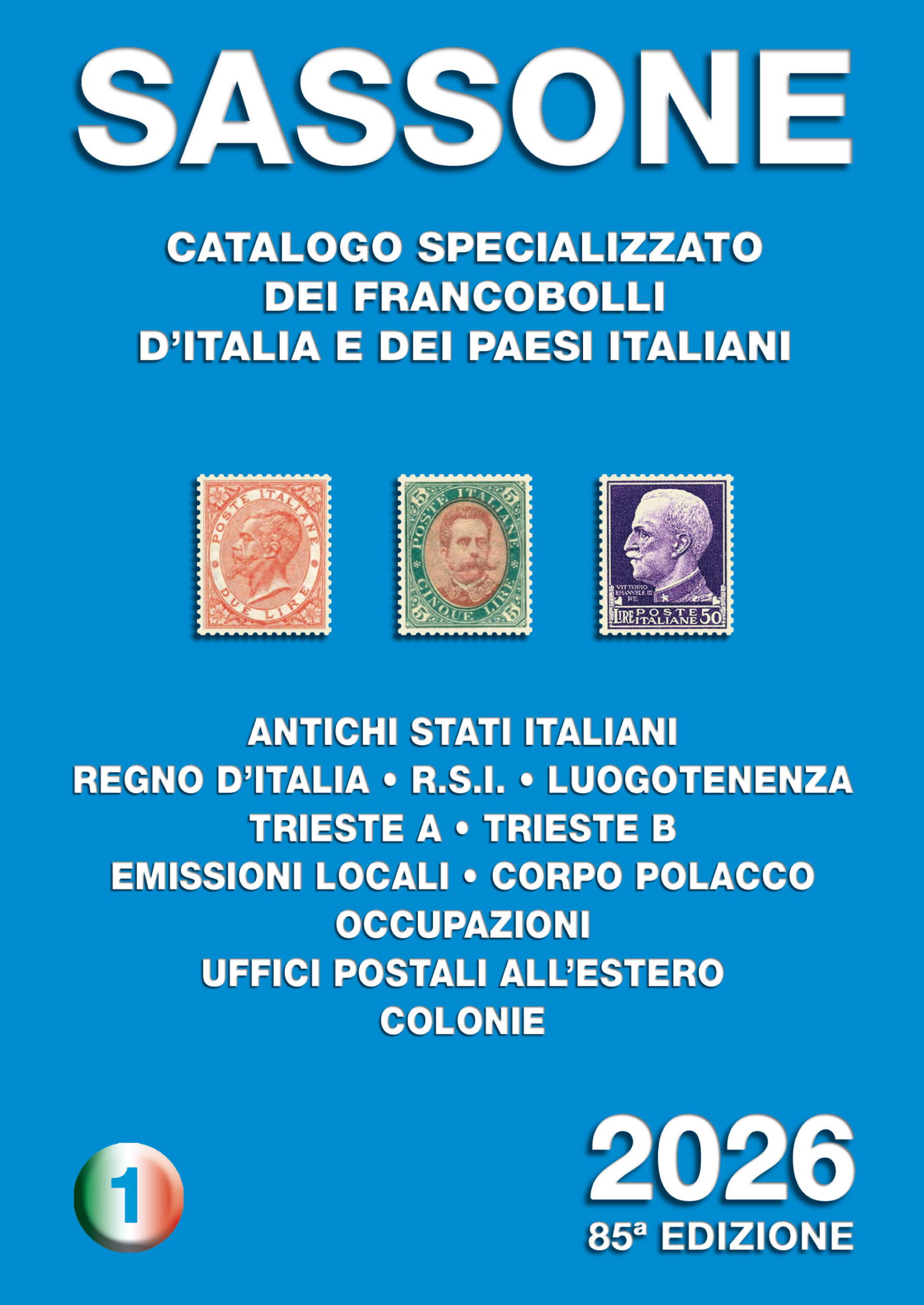 SASSONE 2026 CATALOGO DEI FRANCOBOLLI D'ITALIA E PAESI ITALIANI SPECIALIZZATO vol.1