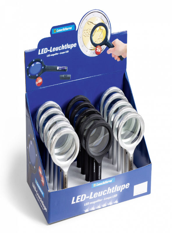Das Display beinhaltet 15 LED-Leuchtlupen NEMO (10x mit