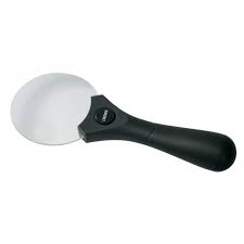 Großer Betrachtungsbereich Lupe 110mm Ø . Vergrößerung 2,5x. im Ausschnitt 4x. Mit Beleuchtung, randlos, Betrieb mit 3 Micro Batterien 1,5V.