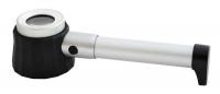 LED-Aufsetzleuchtlupe im Alu-Design, Ausschnitt mit Scala 2 x 2 cm, 10fache Vergrößerung, Linse 30 mm Durchmesser. inkl. Batterien. Lieferung im gepolsterten Etui.