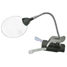 Randlose Linse mit 90 mm Durchmesser. 2 LED-Leuchten. Schwenkbar. Flexibler Lampenhals. Seitliche Tischbefestigung oder freier Stand auf dem Tisch möglich.
