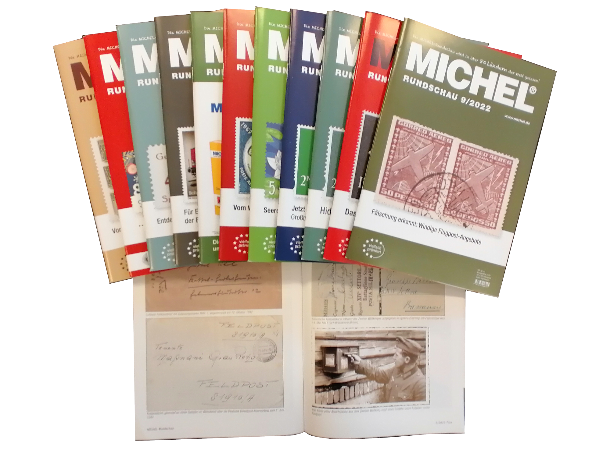 MICHEL-Rundschau 2025 Jahresabonnement 12 Hefte Das philatelistische Fachmagazin mit Neuheitenmeldungen weltweit als Ergänzungen zu allen MICHEL-Nachschlagewerken. Lieferung zzgl. Porto.