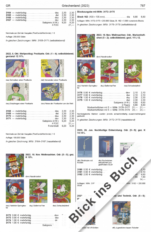 Beschreibung: Die redaktionellen Verbesserungen verteilen sich über das gesamte Werk. In Alt-Bulgarien konnten wir neue Forschungserkenntnisse einpflegen. So sollten Sammler bei der Aufdruckausgabe „Wappenlöwe“ von 1884/1885 auf die Preisunterschiede zwischen den beiden Auflagen achten. Außerdem fügten wir in Bulgarien jeder Markenausgabe das Datum ihrer Außerkurssetzung hinzu. Auch der Jahrgang 2021 wurde hierbei berücksichtigt. Gleiches gilt für die Drachmen-Marken aus Griechenland. Zusätzlich ergänzten wir dort bei nass- und selbstklebenden Marken mit gleichem Motiv die jeweiligen Querreferenzen.