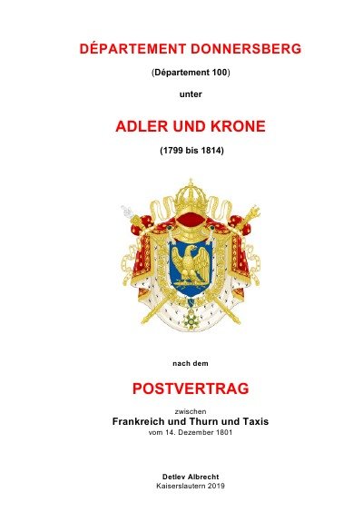 Der Postdienst im Departement Donnersberg während der Besetzung durch die Franzosen; Departementstempel; Distributionsstempel; Chargé; Déboursé; Posttarife; französische Postformulare; Napoleon Bonaparte; General Custine; Reunionspostämter; besondere Persönlichkeiten: links des Rheins; Baron de St. André; Austauschpostämter; Portobriefe; Frankobriefe; Fiskalstempel; Alzey; Bingen; Frankenthal; Homburg; Kaiserslautern; Mainz; Mayence; Neustadt; Speyer; Spire; Worms; Zweibrücken; Deux Ponts; Kusel; DE Coussel; Coussel; Franchisen; Präfekt; Direktor Guyon; Absenderstempel; Grenzübergangsstempel; Nebenstempel auf Brief; Briefe in die Schweiz; Briefe nach Österreich; Leitwege; französische Fahrpost; Zeitungsdienst; französische Taxzahlen; Postvertrag vom 14.12.1801; Österreichisches Taxpatent vom 1. August 1798; Chappé Telegraf; Flügeltelegraf.