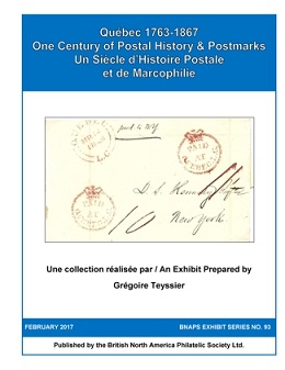 Teyssier, Grégoire Québec 1763-1867, One Century of Postal History and Postmarks, Un Siècle d’Histoire Postale et de Marcophilie.