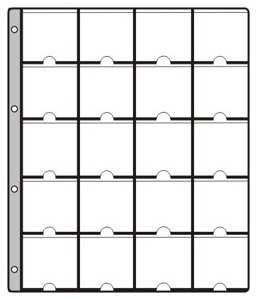 System HARTBERGER Geeignet für 20 Münzenrähmchen 50 x 50 mm, Super Länge 283 mm Breite 240 mm Material PVC-Folie Verpackungseinheit 10 Lieferumfang Münzenblätter Perforation/Lochung 4-Ring Lochung, Standard