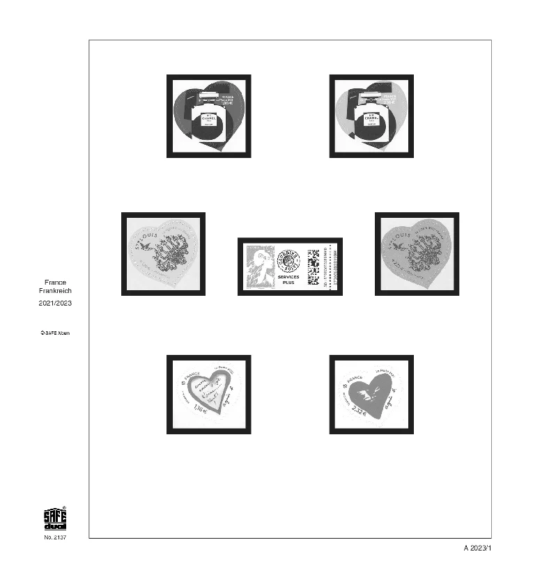 Safe Nachtrag Frankreich selbstklebende Marken Dual 2023 2137TA23Blatt A1 & A2