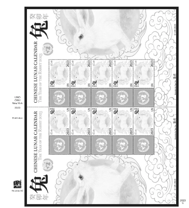 Safe Nachtrag UNO New York Kleinbogen Grußmarken Dual 2023 Nr. 2052SO23Blatt Nr. C-F
