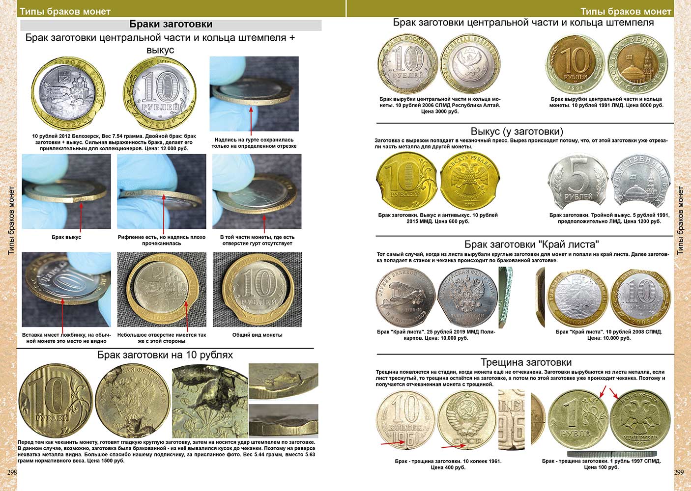 - In den Abschnitten der regulären Prägung sind die Bilder nach Typ geordnet, wobei Änderungen im Design der Münze berücksichtigt werden. Wenn sich beispielsweise das Wappen in den Münzen der UdSSR geändert hat (Bänder wurden im Wappen hinzugefügt), sind die Bilder der Sorten vorhanden.