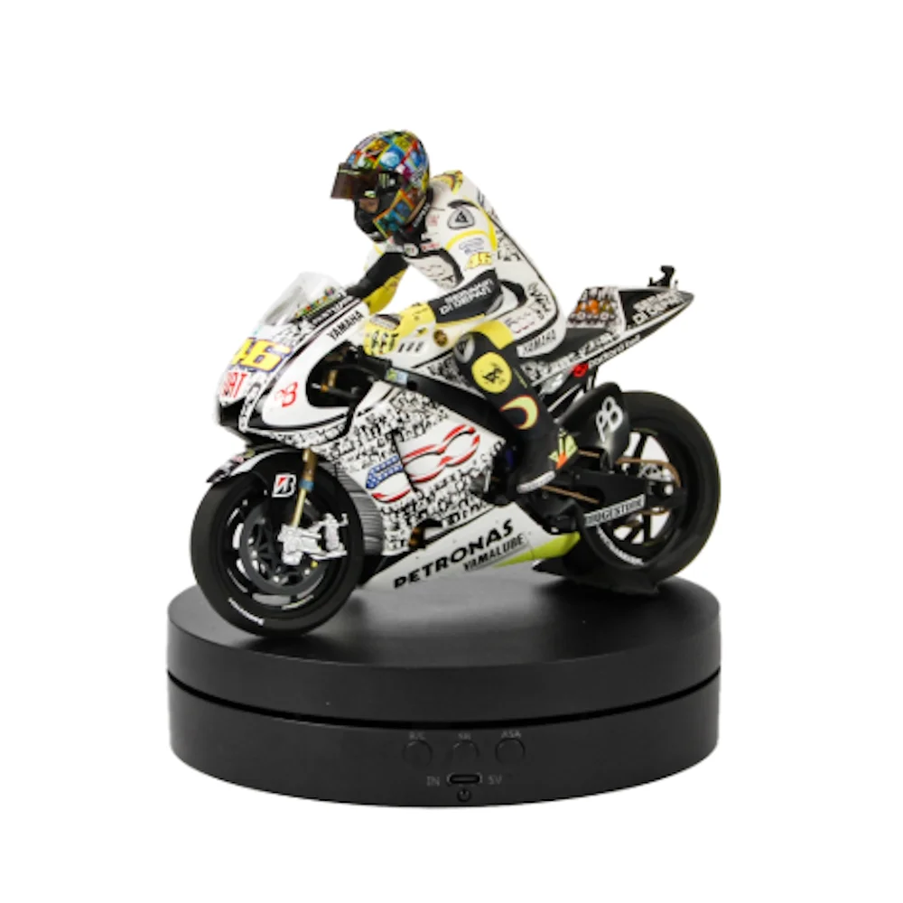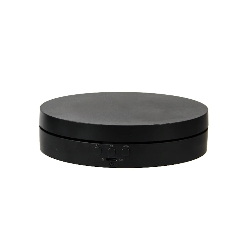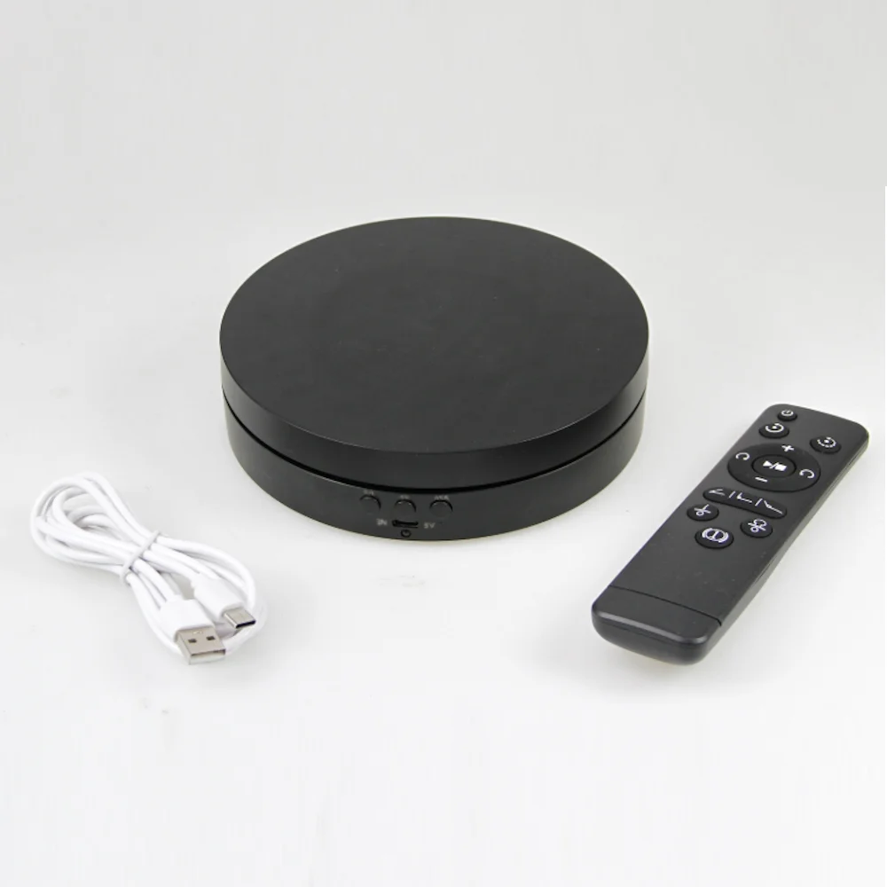 Größe Ø 150 mm H 38 mm Verschiedene Drehrichtungen und Geschwindigkeiten sind einstellbar. Maximale Belastung: 500 g Mit USB oder Batterien. Mit Fernbedienung.