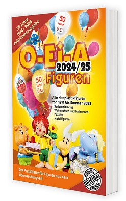 Der Preisführer „O-Ei-A Figuren 2024/25„ zeigt systematisch alle Hartplastikfiguren, die seit 1974 bis zum Sommer 2023 erschienen sind – und natürlich alles, was rund um die Figuren dazugehörte. Alle Objekte sind mit marktgerechten Preisen bewertet. Und wo ein Markt ist, tummeln sich auch Fälscher. Dieser Katalog verrät, woran man Fälschungen von Figuren, Beipackzetteln oder Puzzles erkennt. Damit Sie sicher sammeln können.