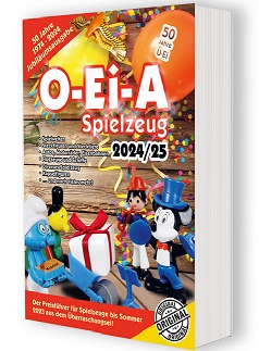 Mit dem Interesse stieg auch der Wert. Manche Raritäten aus der Anfangszeit erzielen heute Höchstpreise. Der Preisführer „O-EI-A Spielzeug 2024/25„ bietet einen vollständigen Überblick über alles, was bis heute neben den Hartplastikfiguren im Ü-Ei war. Auf der Grundlage sorgfältiger Marktbeobachtungen haben die Herausgeber alle Sammelobjekte mit Preisen bewertet. Ein Muss, nicht nur für Sammlerinnen und Sammler, sondern auch für alle Schatzsucher auf Dachböden oder Flohmärkten. Ab in den Müll – oder auf die Malediven: Dieser Katalog macht den Unterschied.