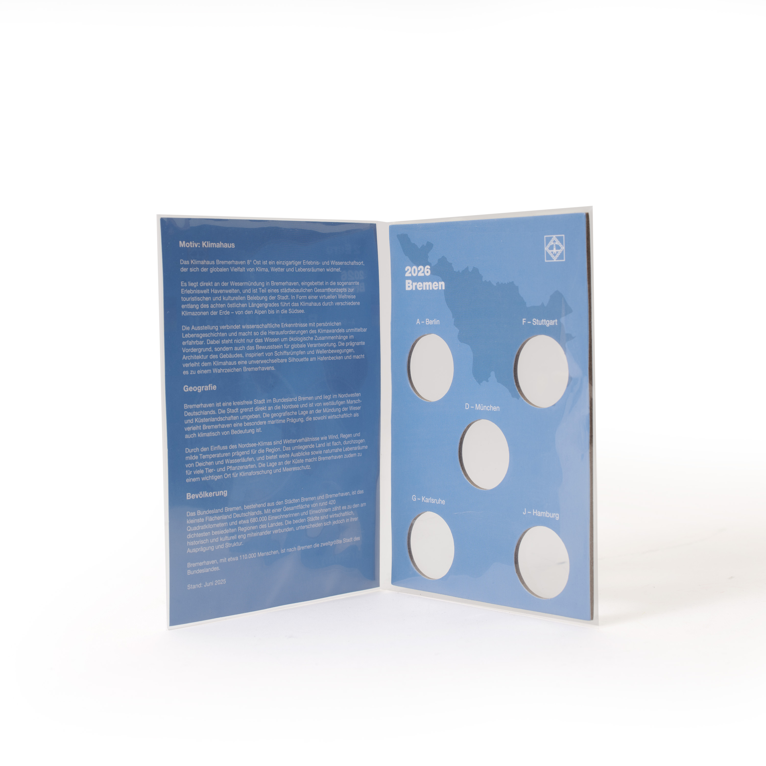 Leuchtturm Münzkarte für deutsche 2-Euro-Gedenkmünze 2026 (Klimahaus Bremerhaven) Artikelnummer: 374371 Eine passgenaue Ausstanzung pro Prägestätte • Kuststoffhülle für zusätzlichen Schutz • Beidseitige Betracht