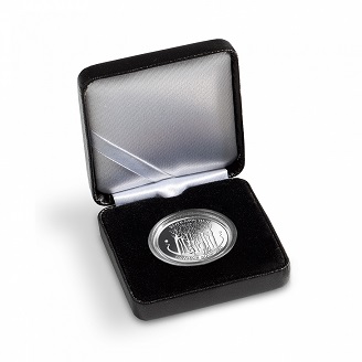 Dieses edle Münzetui in Lederoptik dient zur Unterbringung einer deutschen 20 Euro-Gedenkmünze in einer LEUCHTTURM Direct Fit-Kapsel (CAPS32.5 / CAPSP32.5, InnenØ 32,5 mm). Stabiles Metallgehäuse mit