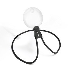 Die flexible Halterung erlaubt es, die Lupe um den Hals zu hängen oder auf einer ebenen Fläche aufzustellen. Durch den Magnetverschluss ist es außerdem möglich, die Umhängelupe als Handlupe zu benutzen. Größe: 11 x 16 x 1,5 cm. Umfang der Halterung: 105 cm. Samttasche zum Schutz der Lupe im Lieferumfang enthalten.