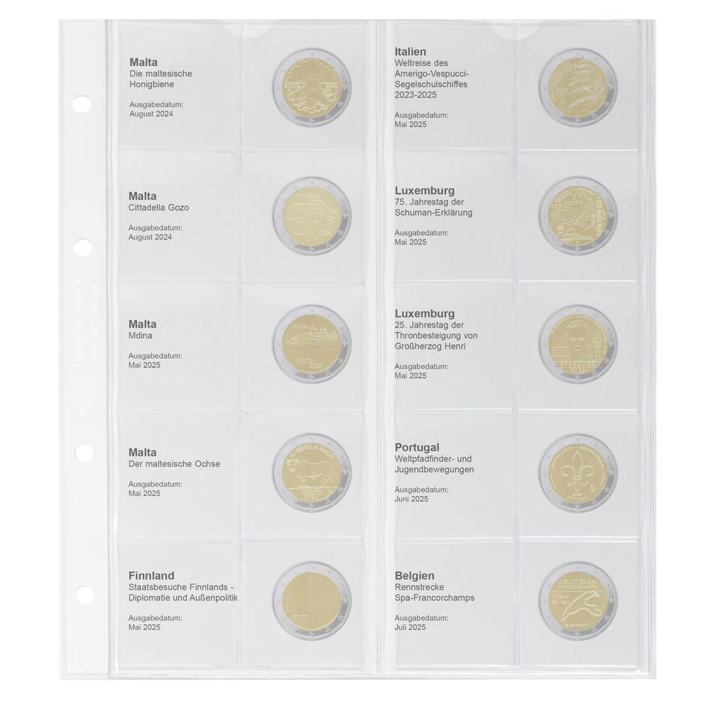 Lindner Vordruckblatt karat für 2 Euro-Gedenkmünzen: Malta 2024 - Belgien 2025 Nr. 1118-43