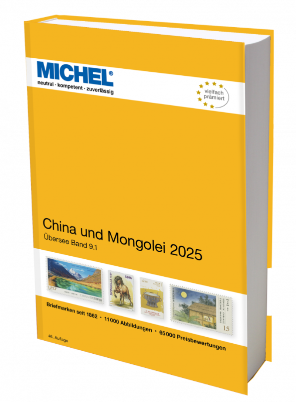 Beschreibung: Erstmals wurde das Sammelgebiet Mongolei in diesen Katalog aufgenommen. Der ostasiatische Binnenstaat brachte bereits 1924 seine eigenen Marken heraus, jedoch wurde die Unabhängigkeit des Staates erst 1946 vom Nachbarland China anerkannt. Dies führte dazu, dass in dieser Zeitperiode Briefe aus der Mongolei von der chinesischen Post mit Nachporto belegt wurden, sofern das Porto nicht in chinesischen Marken vorausbezahlt war. Ambitionierte Sammler können nun mithilfe des MICHEL ihre China-Sammlung um dieses besondere Sammelgebiet erweitern.