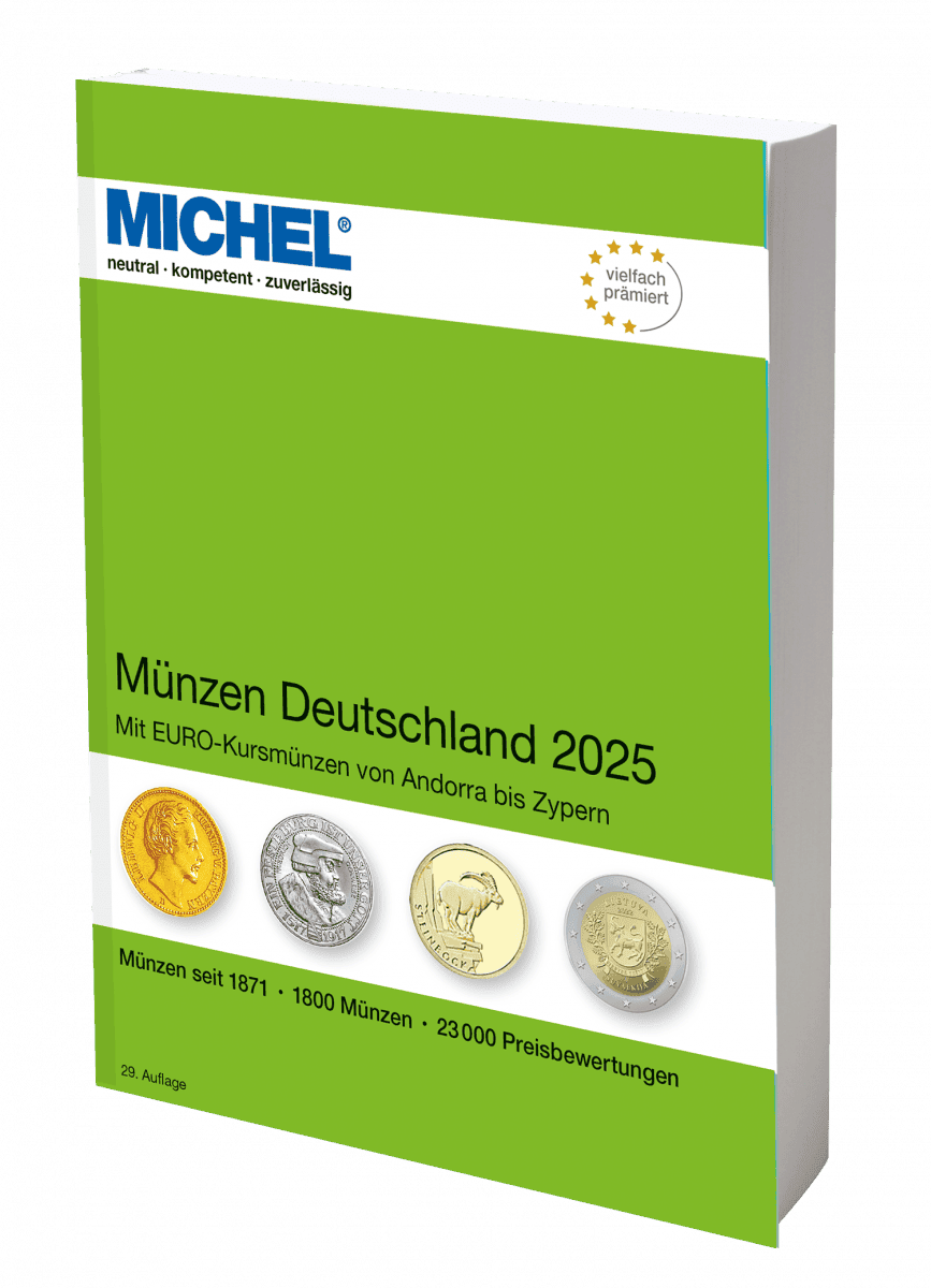 Für die Sammler der 2-Euro-Kursgedenkmünzen wurden wieder die Neuheiten des Jahres 2024 aller teilnehmenden Euroländer mit entsprechenden Auflagen und Preisen erfasst. Damit ist der MICHEL ein inzwischen unverzichtbares Nachschlagewerk für die Sammler dieses Gebietes geworden.