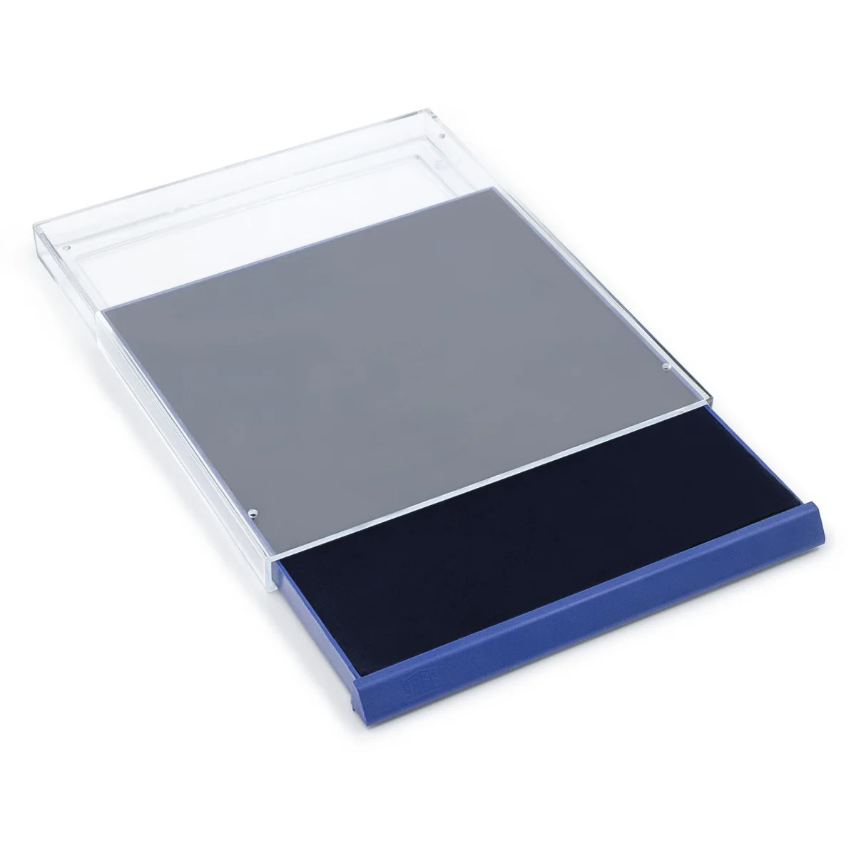 Jedes Element besteht aus einer blauen Schublade mit königsblau-beflocktem Einsatz und einem transparenten Schubteil.