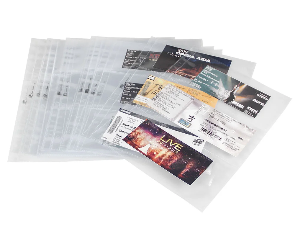 - Im 15er oder 50er Pack wählbar: Glasklare Hüllen mit 3 Taschen à 215 x 97 mm, ideale Ergänzungshüllen für das 7923 Ticketalbum