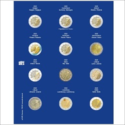 Safe TOPset Album für 2€ Nachtrag 2022 Nr. 7302-38 für TOPset Album 7302 (2€-Münzen). Für 2€ Münzen in Kapseln. Die TOPset-Blätter bestehen aus einem transparenten Eindrückblatt (die Münzen sind beidseitig sichtbar) und einem farbigen Vordruckblatt. Blatt für Jahrgang 2022.