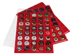 Lindner Plateau ECO luxe per 2 Stück Nr. 3510PTableaus mit Klarsichtdeckel für jeweils 40 Champagner-Kapseln.Fachmaße: 30 x 30 mm