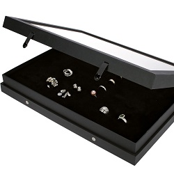 Hochwertige Vitrine "Black Edition" für Ringe und Manschettenknöpfe.