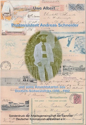 Das neuste Werk von Uwe Albert widmet sich einem Thema welchen Sammlern von Ansichtskarten aus Deutsch-Südwestafrika durchaus bekannt sein wird. „Andreas Schneider„ oder „Onkel Andreas„ aus Otyimbingue und Karibib wird ihnen im Zeitraum 1898 – 1902 sicherlich schon begegnet sein. Der Postassistent und Ansichtskartensammler schickte damals seinen Verwandten und Bekannten teilweiße mehrfach am Tag Ansichtskarten. In diesem Buch werden die in vielen Jahren zusammengetragenen Ansichtskarten des Autors und Vorlagen anderer Sammler aufgeführt und beschrieben. Vermutlich schlummern weißere Karten aus Schneiders Korrespondenz in den Alben anderer Sammler.